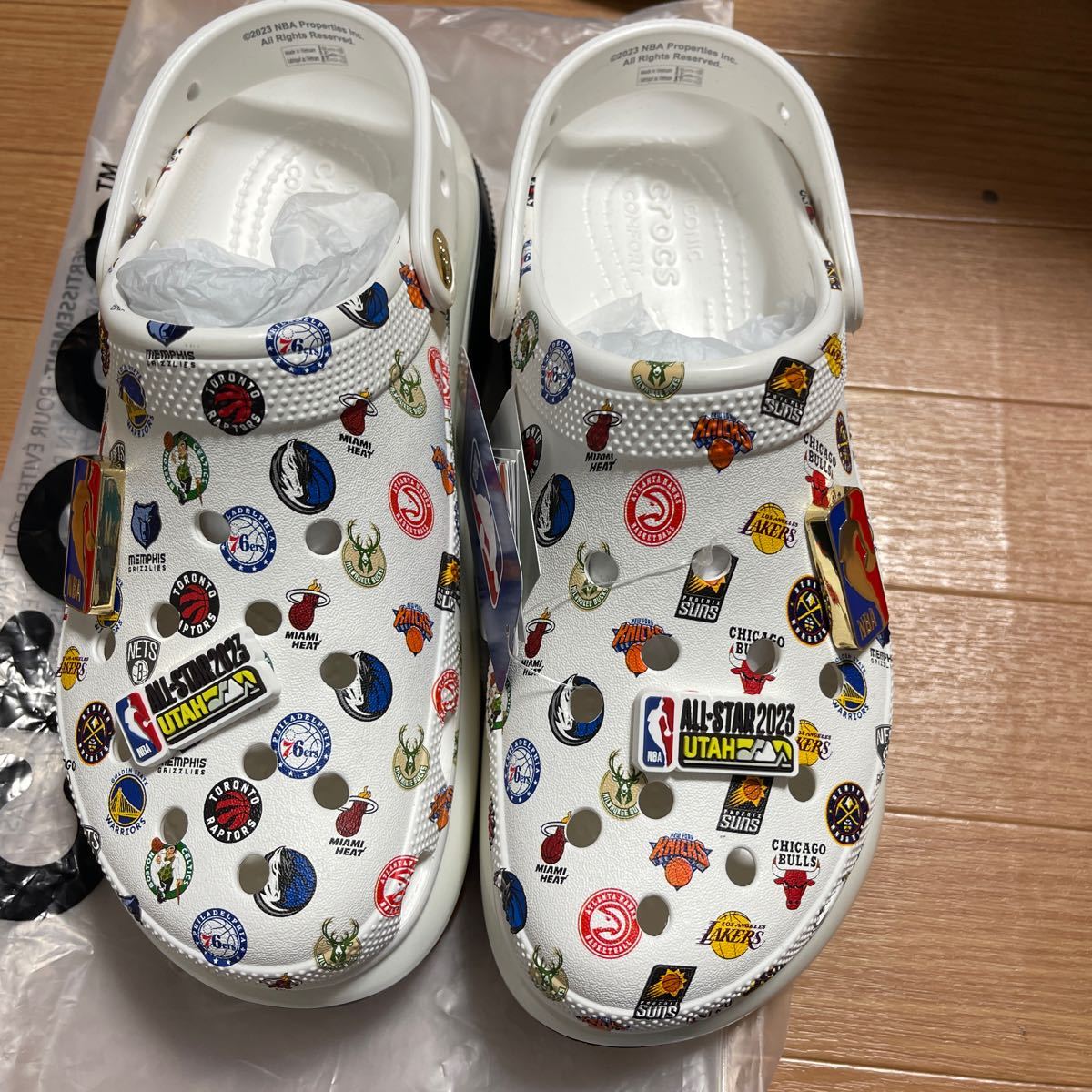 Два индивидуальных шарма NBA All-Star Jibbitz (TM) от Metallic’s NBA Logoman и 2023 NBA All-Star Charms. Я хочу настроить и наслаждаться.